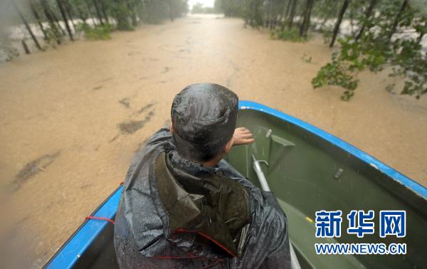 7月13日,安徽池州齊石公路從新華村至白洋村路段被水淹沒(méi)。當(dāng)日,受強(qiáng)暴雨影響,安徽省池州市貴池區(qū)暴發(fā)山洪,多處道路被沖斷,山體滑坡,洪水蔓延,造成梅街、梅村、棠溪三個(gè)鄉(xiāng)鎮(zhèn)45個(gè)村的5萬(wàn)多名群眾受困。武警官兵、民兵預(yù)備役人員和當(dāng)?shù)馗扇阂讶ν度肟购閾岆U(xiǎn)。目前,無(wú)人員傷亡報(bào)告。新華社記者 郭晨 攝