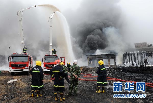 7月17日,消防隊(duì)員在火災(zāi)現(xiàn)場(chǎng)撲火。當(dāng)日10時(shí),大連市政府召開(kāi)新聞發(fā)布會(huì),宣布大連新港輸油管道爆炸現(xiàn)場(chǎng)儲(chǔ)油罐的所有閥門(mén)全部關(guān)閉,火勢(shì)基本撲滅,事故未造成人員傷亡。 7月16日18時(shí)許,大連新港附近中石油的一條輸油管道發(fā)生爆炸起火。起火管道為直徑900毫米的原油儲(chǔ)罐陸地輸油管線,后引起700毫米管線起火,油罐沒(méi)有起火。燃燒產(chǎn)生氣體主要為含硫和芳烴類(lèi)氣體,無(wú)劇毒。新華社記者 李鋼 攝