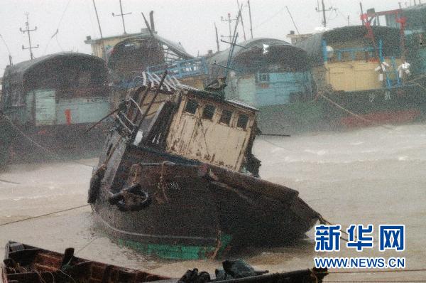 7月22日,廣東省陽江市沙扒漁港漁船遭到強風吹襲。