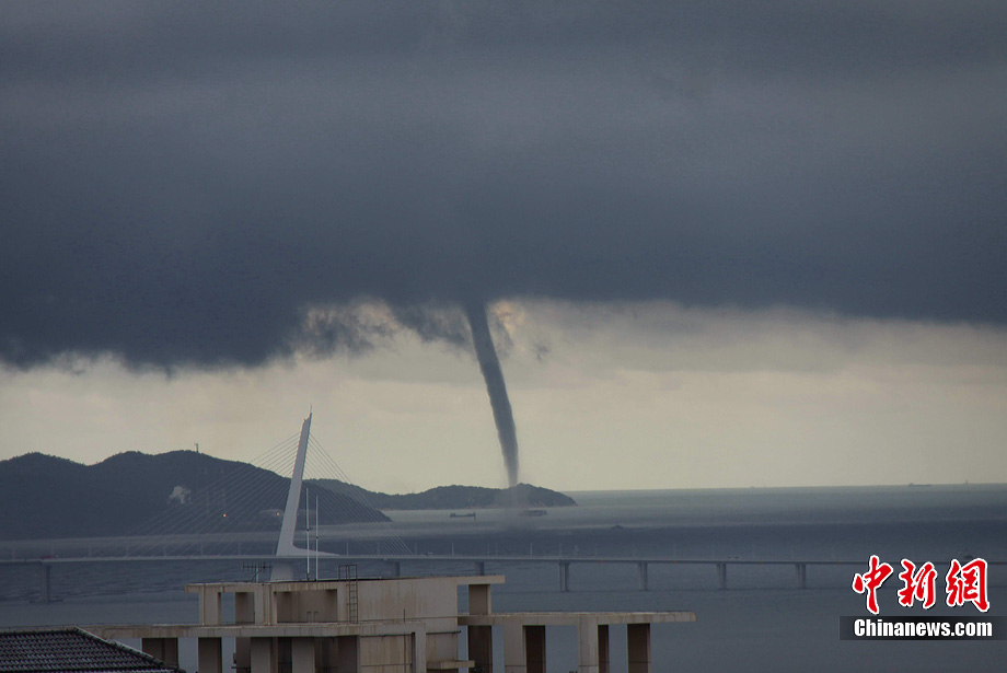 深圳灣西南部臨近香港一側海面上27日上午9點前后出現了“水龍卷”自然奇觀,整個過程長達十多分鐘,當時在深圳灣上空積雨云下方伸出漏斗形狀的黑色云柱,先后有3個水龍卷形成,也有蛇口市民報告稱看到了4條,最長的水龍卷從海面旋轉直上,遠遠望去高達數百米直沖天際,蔚為壯觀。