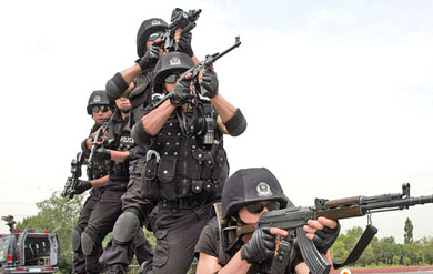 入夏的廣州,太陽灼人。全副武裝的官兵在廣州軍區某部心理防護基礎訓練演示現場做著熟練的戰術動作。周長300余米的訓練場面積不大,但設施配套適用,功能齊全,一邊是心理行為器械訓練場,一邊是模擬實戰環境訓練場。