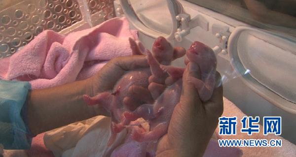 這是剛剛產(chǎn)下的熊貓龍鳳胎寶寶(8月6日攝)。