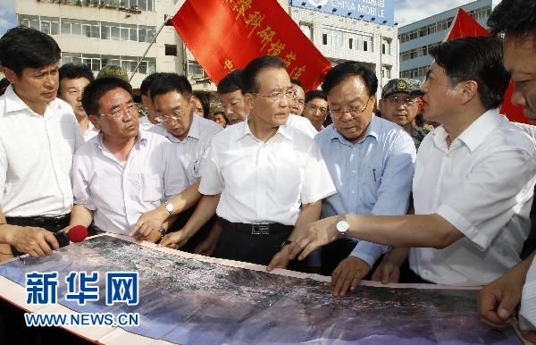 8月8日下午,中共中央政治局常委、國務院總理溫家寶趕到發生特大泥石流災害的甘肅舟曲縣災區,察看災情,指導救災。新華社記者李學仁攝