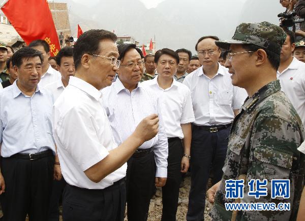 8月9日,中共中央政治局常委、國務院總理溫家寶繼續在甘肅舟曲縣特大山洪泥石流災區察看災情,指導抗洪搶險救災工作。 新華社記者 李學仁攝