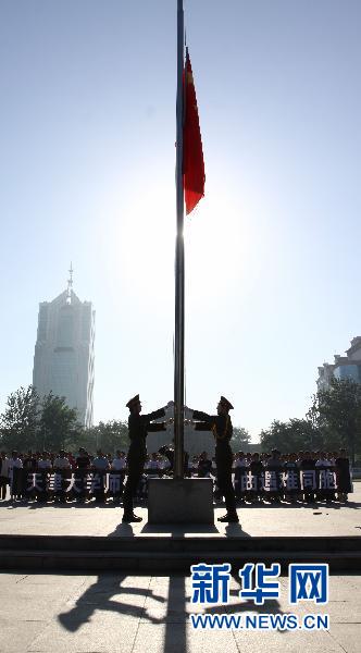 8月15日清晨,天津大學舉行降半旗儀式,悼念舟曲遇難同胞。