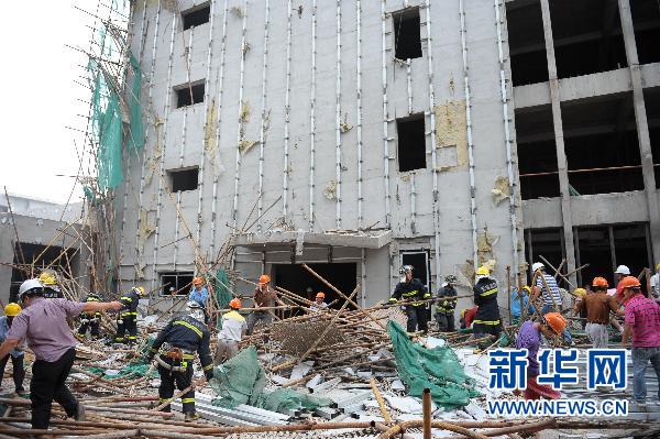 8月30日,消防官兵正在事故現場進行施救。當日9時10分,位于無錫市民豐路的北塘區文教中心在建工地發生腳手架坍塌事故。無錫消防迅速出動45名消防員到場施救。經過1個半小時的緊張救援,成功將被埋壓的7名工人全部救出。截至發稿時間,已經有6名工人脫離生命危險。新華社發(呂正坤 攝)