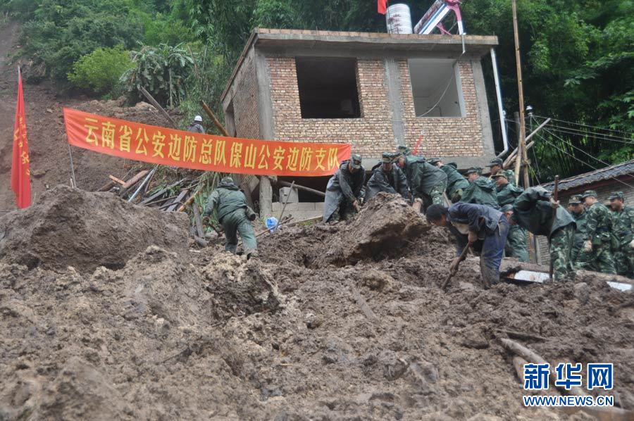 9月2日,云南保山公安邊防支隊(duì)赴瓦馬鄉(xiāng)搶險(xiǎn)救援突擊隊(duì)官兵在現(xiàn)場(chǎng)進(jìn)行挖掘,搜救被埋群眾。