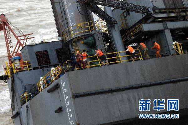 9月8日,救援人員在傾斜的山東東營(yíng)勝利油田作業(yè)3號(hào)鉆井平臺(tái)上營(yíng)救遇險(xiǎn)人員。