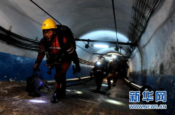 礦山救護(hù)人員返回出事礦井巷道井口(10月16日攝)。