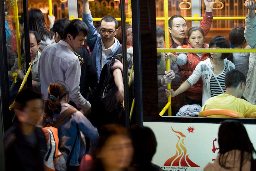11月1日,公交免費后,因為不用從前門刷卡機刷卡,許多乘客改從后門上車。當天是廣州亞運單雙號限行和免費乘車首日,從當日起,在亞運會及亞殘運會機動車單雙號限行的30個工作日里,廣州公共交通服務免費。