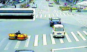 男子腳踩兩輛碰碰...