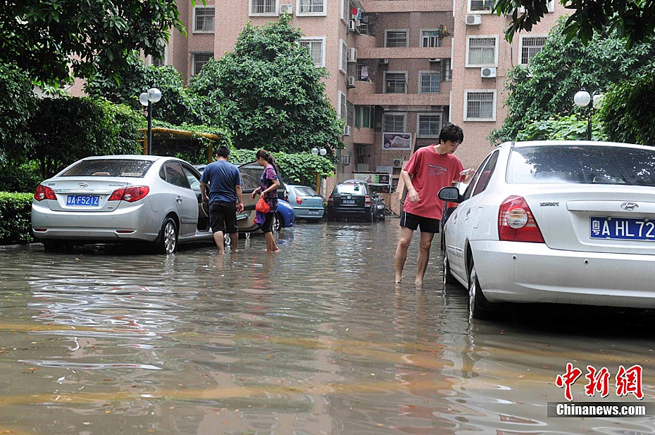 5月22日早,廣州發(fā)布了橙色暴雨預(yù)警信號(hào),上午的一場暴雨造成廣州城內(nèi)多處水淹,位于濱江東路一小區(qū)成為澤國,不少汽車被泡在水中,水漸退后,車主紛紛查看汽車的受損情況。中新社發(fā) 梁永強(qiáng) 攝