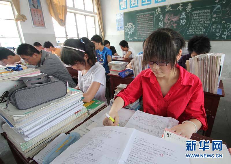 6月3日,山東省臨沂市郯城縣第二中學高三學生在復習備考。中國教育部考試中心主任戴家干6月2日接受訪談時透露,2011年全國大約有933萬名高考生,比去年減少約24萬名,招生計劃大約是670萬,錄取率70%以上。