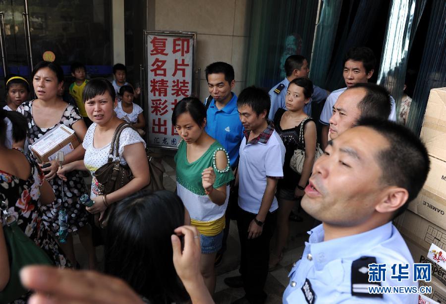 8月19日,由于對大廈實施警戒,大廈內部部分員工下班走出大廈。記者從重慶警方獲悉,19日14時20分左右,重慶江北區觀音橋步行街附近發生一起入室搶劫案,目前未發現人員傷亡,犯罪嫌疑人搶劫后逃逸,警方正在全力偵辦中。記者了解到,案發地點位于觀音橋步行街附近的浩博天庭大廈內,犯罪嫌疑人搶劫的是一家汽車租賃公司。 新華社記者 陳誠 攝