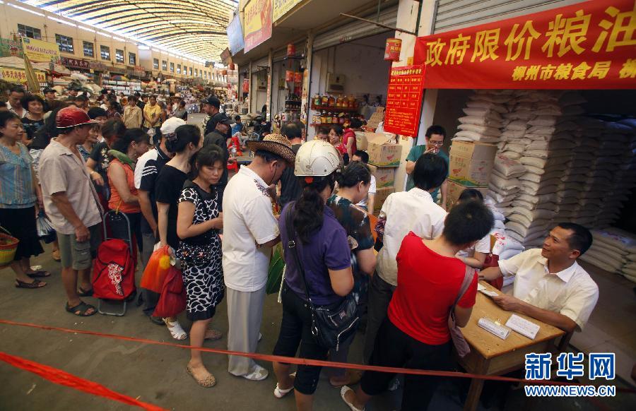 8月25日,在柳州市一限價糧油銷售點,市民排隊購買限價糧油。 為應對居民消費價格指數持續高位運行的局面,8月23日起廣西柳州市向市民供應限價糧油和豬肉。該市共設置4個限價糧油銷售點和4個限價豬肉銷售點,以低于市場價10%至20%的價格銷售。在銷售點,每人限購一袋米、一桶油、2斤豬肉。限價糧油和豬肉將持續供應至10月31日,以緩解物價上漲給居民生活帶來的壓力。 新華社發(張存立 攝)