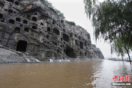 9月15日,位于洛陽龍門石窟盧舍那大佛河對面的禮佛臺已經過水。中新社發 張曉理 攝 圖片來源:CNSPHOTO