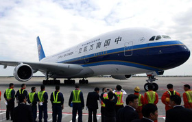 中國首架A380飛抵上海