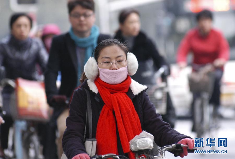 11月22日,在南京市街頭,市民身著厚實衣物騎車出行。