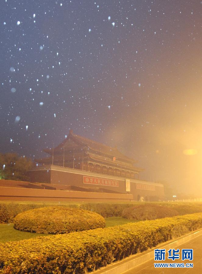 當日,北京降下今冬第一場雪。降雪從清晨開始,大多數雪花落地后迅速融化。 新華社記者 邢廣利 攝