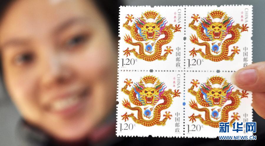 中國郵政集團公司將于1月5日發(fā)行《壬辰年》郵票。這張生肖“龍”郵票是第三輪生肖“龍”郵票,在設計上基本參考了明清蟠龍的造型,與我國第一枚生肖“龍”郵票——“大龍”郵票的形式有某種程度上的呼應。新華社發(fā)(朱桂根 攝)