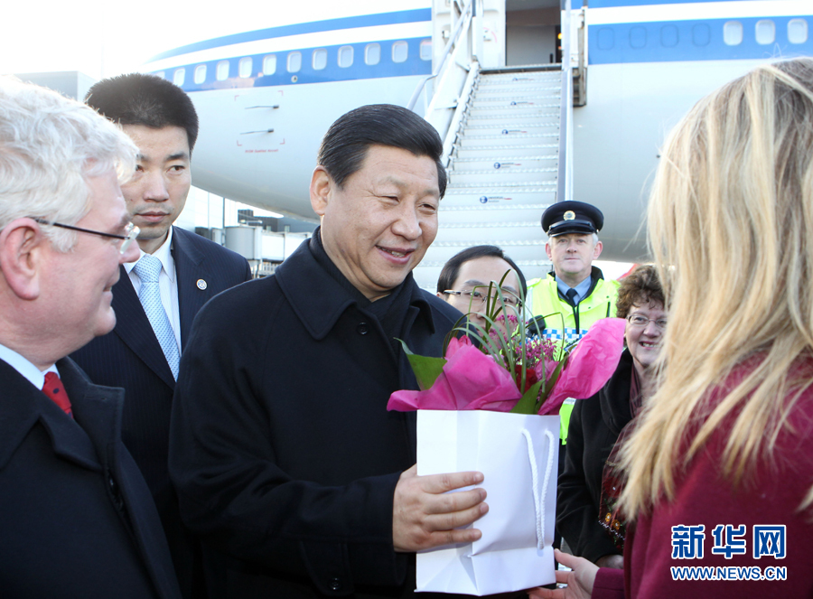 2月18日,應愛爾蘭總理肯尼邀請,中國國家副主席習近平抵達位于愛爾蘭中西部的城市香農,開始對愛爾蘭進行正式訪問。這是在香農機場愛爾蘭女青年向習近平獻花。新華社記者 蘭紅光 攝