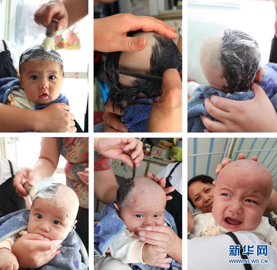 2月23日拍攝的貴州安順一位小朋友“剃龍頭”的全過程。(拼版照片)當日是農歷二月初二,民間有“二月二,龍抬頭”的說法。為討個好彩頭,許多家長帶著孩子到理發店理發。新華社發(盧維 攝)