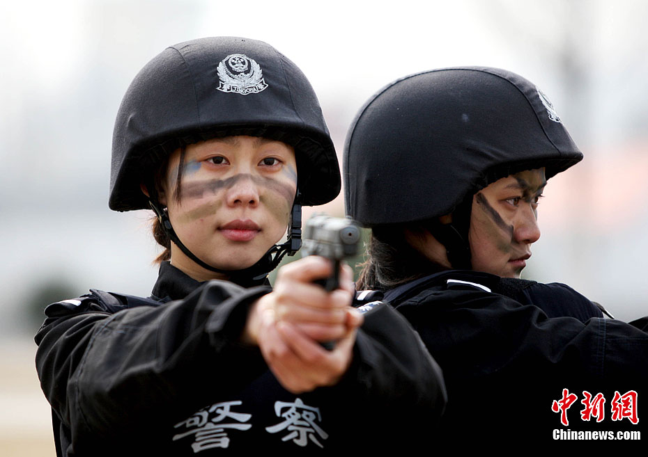 3月7日,安徽省淮北市公安局特警支隊女特警在訓練場上進行技能訓練。在安徽省淮北市公安局特警支隊,活躍著一批80后女特警反恐小分隊。這些看似溫柔的女孩每天都要進行嚴格的“魔鬼式”訓練。“剛來特警隊時,訓練節奏根本就跟不上那些男隊員,就把自己所有的空余時間都用在訓練上,晚上回家在家里練,就這樣慢慢地跟上他們的節奏了。”劉佳說,為了彌補女性先天上體力不足的劣勢,自己只能加倍訓練,經過瘋狂訓練,自己與隊友間的差距也在逐漸減少。雖然很苦但我們姐妹們卻衷心熱愛著這份事業,守護人民群眾的一方平安。”圖為3月7日,安徽省淮北市公安局特警支隊女特警在訓練場上進行技能訓練。中新社發 王璋聞 攝