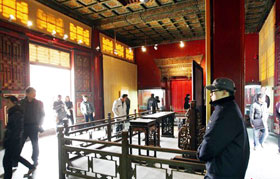 3月26日,上海環球金融中心高空作業清潔隊“高空超人”在94層至101層的風洞調整擦窗機位置,進行清洗。 新華社發