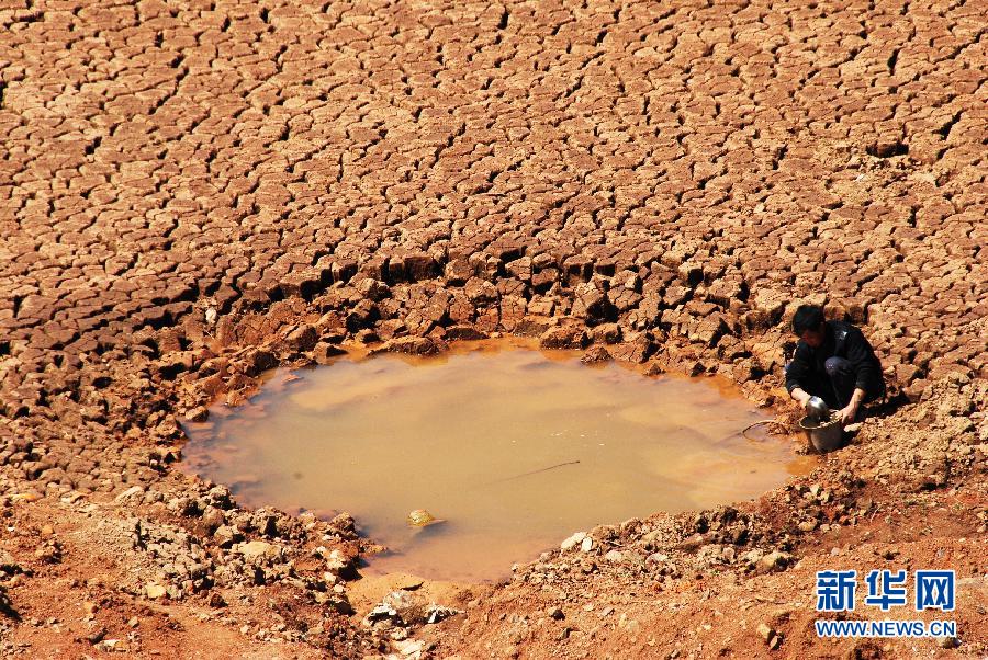 連日來(lái),貴州東南部多地出現(xiàn)暴雨洪澇災(zāi)害的同時(shí),地處貴州省西北部的畢節(jié)市威寧縣海拉鄉(xiāng)仍然持續(xù)干旱。當(dāng)?shù)刈?011年9月以來(lái),已持續(xù)干旱超過(guò)半年。據(jù)當(dāng)?shù)卣?月20日旱情統(tǒng)計(jì)數(shù)據(jù)顯示,目前,旱災(zāi)已致海拉鄉(xiāng)18個(gè)村、29763人受災(zāi),12110人、 12453 (頭)牲畜出現(xiàn)飲水困難,馬鈴薯、玉米、黨參、金銀花等2.4萬(wàn)余畝農(nóng)作物受災(zāi)。新華社發(fā)(楊文斌 攝)