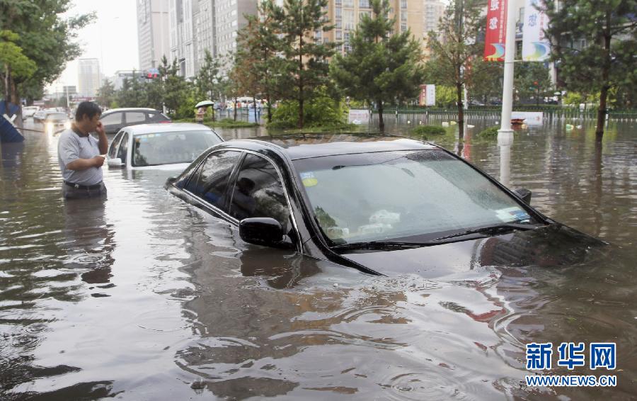 強降雨襲哈爾濱 汽車變“潛艇”