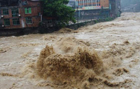 7月7日,三峽大壩開啟4個泄洪深孔泄洪。當日,形成于長江上游的2012年“1號洪峰”抵達三峽水域,流量高達每秒5.6萬立方米,創今年汛期來水新高。洪峰到來時,三峽樞紐積極攔蓄洪水,水庫水位漲幅明顯,7日上午漲至151米以上,高出防洪限制水位6米,創今年汛期水位新高。新華社發(鄭家裕 攝)