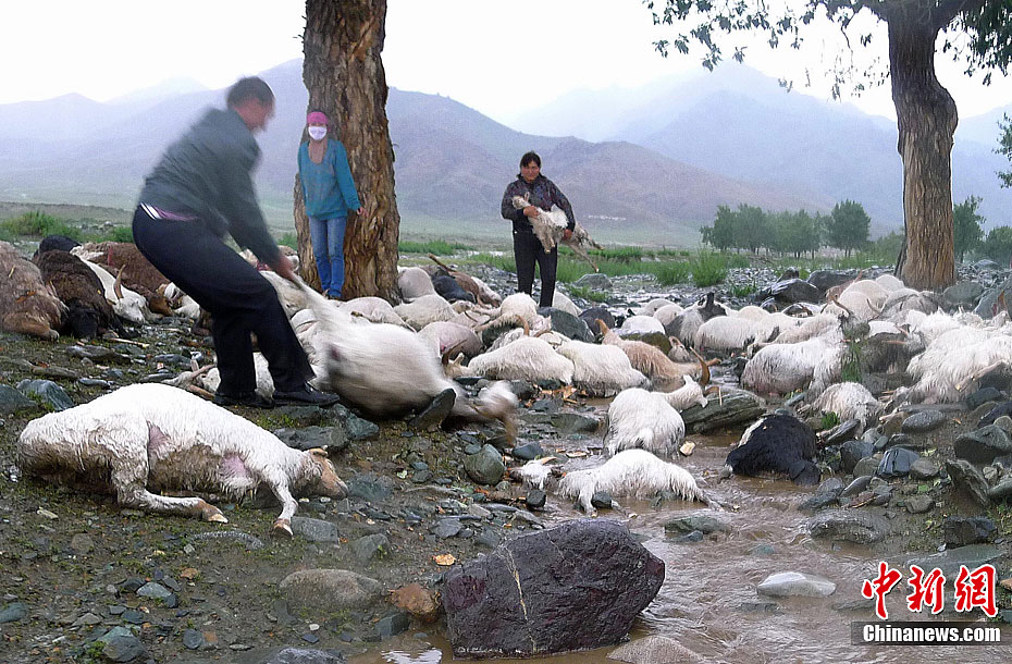 7月10日,新疆和布克賽爾縣查干庫勒鄉松樹溝夏牧場再度出現雷雨天氣,該牧場巴音查干村牧民巴生·革瑪家的羊群在這次雷雨天氣中遭到雷擊,經現場確認,這次雷雨天氣中,共有173只羊被雷電擊中死亡,牧民經濟損失嚴重。據介紹,進入7月,新疆和布克賽爾縣查干庫勒鄉松樹溝夏牧場連續遭遇雷雨天氣,當地政府提醒山區牧民應提高防雷安全意識,防范雷擊事故發生。圖/文 屈婧 奇峰 劉偉