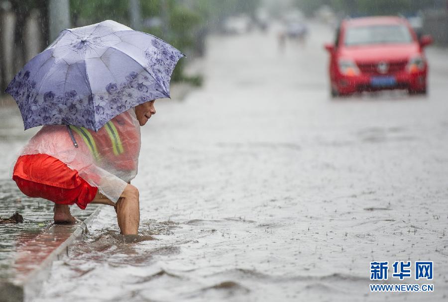 7月12日,重慶市江北區,一疏浚工用手清理堵塞下水道的垃圾。當日,時值上班高峰期間,重慶市遭到暴雨襲擊,多條公路陷入半“癱瘓”狀態,不少市民為準時上班只得步行前進。重慶市氣象臺發布“暴雨黃色預警信號”,東北部、東南部部分地區及主城地區出現大雨到暴雨。新華社記者 陳誠 攝