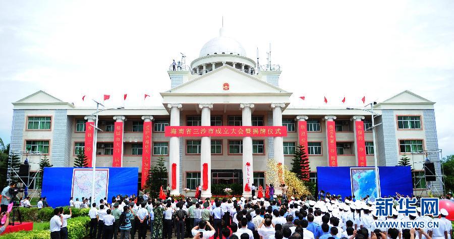 7月24日上午10時40分,海南省三沙市成立大會暨揭牌儀式在三沙市永興島隆重舉行。 新華社記者 侯建森 攝