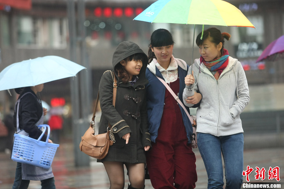重慶陰雨綿綿氣溫陡降 市民冬裝上陣 2012-11-06 07:56