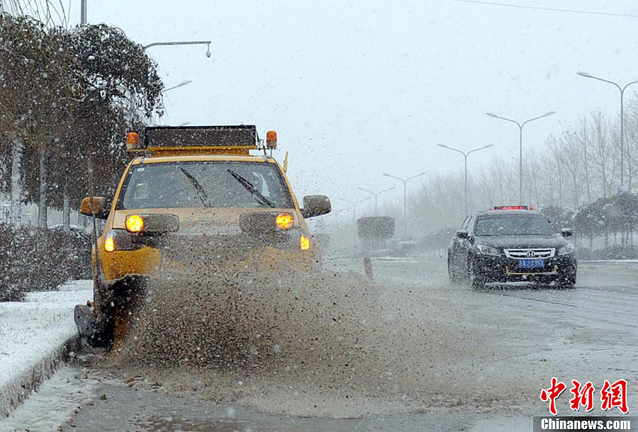 截至12日19時,長春市這場大規模降雪仍在繼續,已達到暴雪級別。隨著雪量的增大和氣溫的下降,白天濕滑的路面已開始被厚厚的積雪所覆蓋。面對這場降雪,長春各部門均采取應對措施,交警全員上崗執勤,環衛部門不停地在路面上清雪,供暖部門也做足準備,延長鍋爐運行時間和水溫。據悉,這場降雪將持續到后天,不過雪勢會逐漸轉弱。圖為12日白天,清雪車進行清雪作業。張瑤 攝