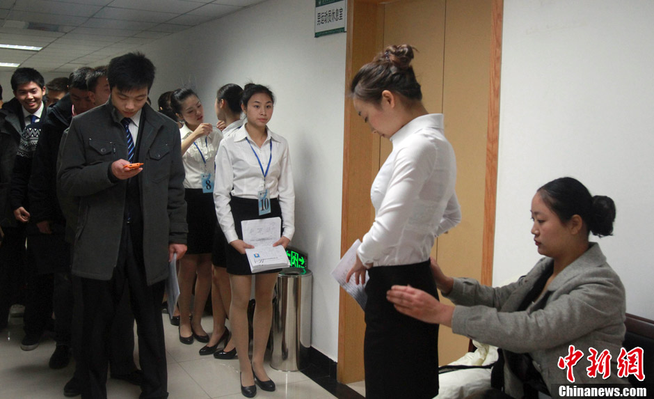 11月21日,繼東航、國航兩家航空公司在武漢招聘空乘人員(航空安全員)不足一周后,今日南航再次開啟武漢站招募工作。面試首日即吸引數(shù)千名帥哥靚女參與競爭。應(yīng)聘者大部分來自武漢高校應(yīng)屆畢業(yè)生及大三、大四學(xué)生,也有不少專程從湖南、江西、陜西等地趕來的。與往年不同,南航這次招聘空乘人員時增加了英語水平要求。特別提出應(yīng)屆及往屆畢業(yè)生需在報名時通過高等學(xué)校英語應(yīng)用能力考試A級或以上,此外“全國英語等級考試三級合格證書”等硬性語言要求也成為新的門檻。中新社發(fā) 張暢 攝