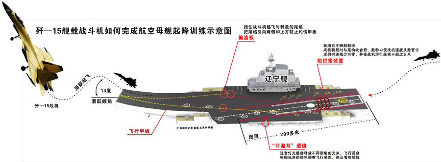 圖表:殲—15艦載戰(zhàn)斗機如何完成航空母艦起降訓練示意圖 新華社記者 崔瑩 王永卓 編制