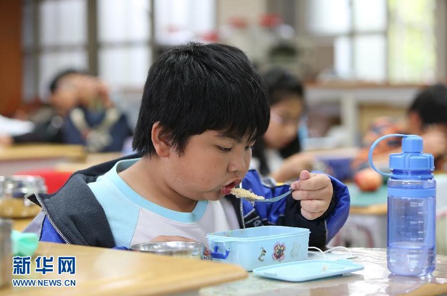 臺北大佳小學的學生在享用午餐。學生“營養午餐”的問題近來備受人們關注。而推行“營養午餐”已有一段時間的臺北市,在這方面有什么成功經驗? 新華社駐臺記者走進位于臺北市基隆河畔的大佳小學,現場采訪、體驗這里的“營養午餐”。新華社記者 邢廣利 攝