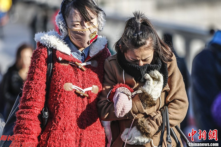 12月17日,伴隨著五六級北風,籠罩在北京上空近五天的霧霾散去,而新一輪降溫即將到來。氣象專家認為,北京冬至以后,最高溫度只有-5℃到-7℃,最低溫度降到-10到-15℃,數九寒天從此將拉開序幕。圖為西單市民出行時受大風困擾。中新社發 張浩 攝