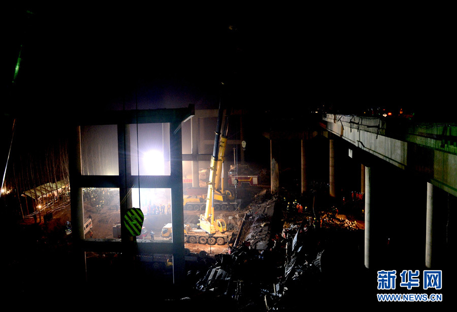 這是2月1日拍攝的事故救援現場。記者從連霍高速義昌大橋爆炸坍塌事故救援現場獲悉,該事故目前已經造成9人死亡,救援工作仍在緊張進行。 新華社記者 趙鵬 攝