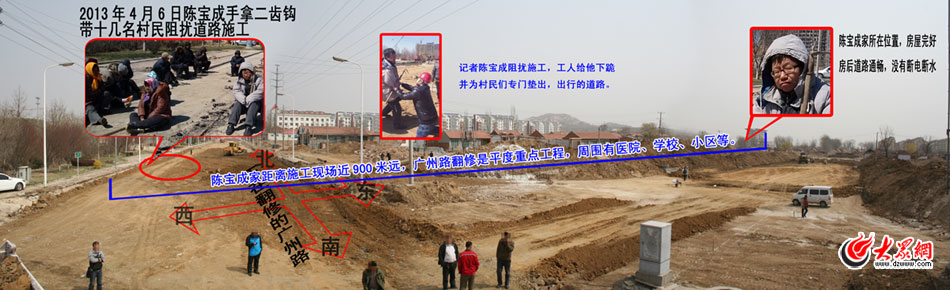 真實情況是,施工現(xiàn)場只是在修路,距離陳家近900米,根本沒有人拆他的房子。(圖片均來自現(xiàn)場目擊者微博)