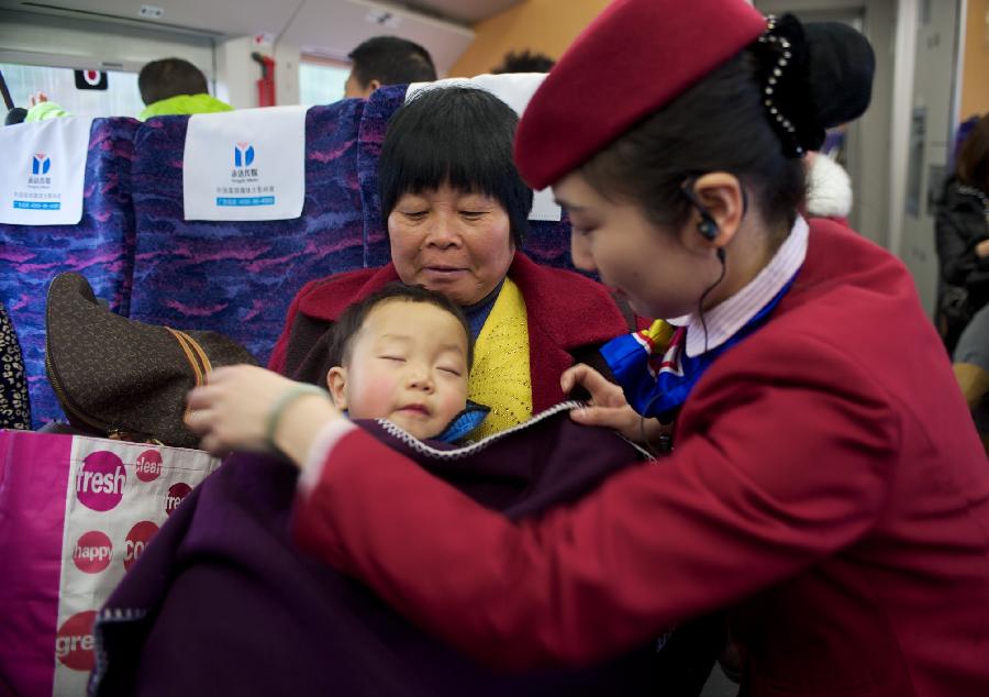 2014年春運大幕已經開啟,返鄉的人們踏上旅途。為了讓旅客“安全出行、方便出行、溫馨出行”,廣大鐵路職工、志愿者不辭辛勞,奮戰在春運一線。新華社記者胡晨歡攝