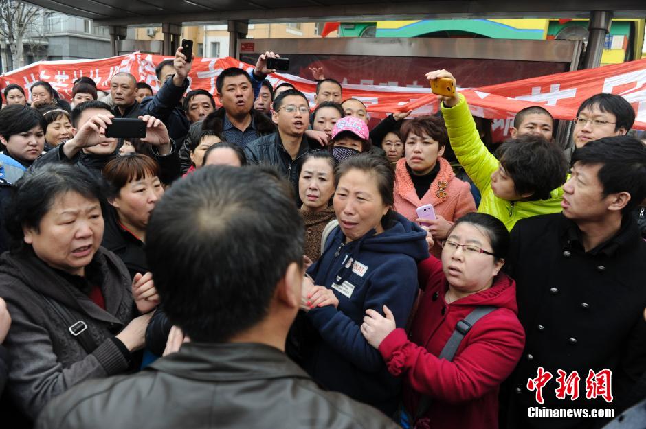 3月17日,在吉林市芳林幼兒園門前,百余名家長聚集在一起討要說法。近日,吉林市芳林幼兒園被曝曾給幼兒喂食“不明藥物”。吉林市警方經調查初步確認,該園涉嫌擅自給幼兒服用“病毒靈”,截至16日17時,吉林市公安局已對吉林市芳林幼兒園董事長助理王麗娜,高新區分園園長張新宇、園長助理郭月輝以涉嫌非法行醫罪予以刑事拘留。對昌邑區內芳林幼兒園其他三所分園涉嫌擅用“病毒靈”正在進一步取證核實。文字來源:新華網 中新社發 張瑤 攝
