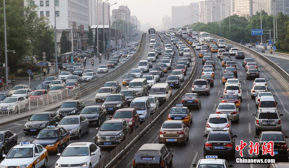 4月30日傍晚,北京西二環(huán)車輛嚴(yán)重?fù)矶隆=还懿块T指出,當(dāng)日晚高峰從14時左右開始,持續(xù)時間超過5小時,達(dá)到“嚴(yán)重?fù)矶隆钡燃墸砀叻迤骄煌ㄖ笖?shù)達(dá)到8.2(峰值超8.5)。部分高速、快速路車流高峰將持續(xù)至23時。中新社發(fā)張浩 攝