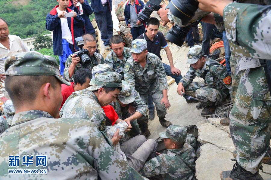 云南魯甸地震一名被埋人員被成功救出 (/)