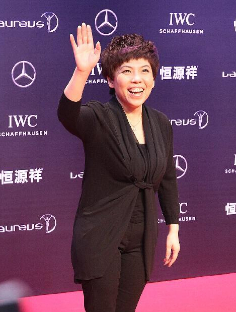 4月15日,參加頒獎典禮的鄧亞萍走上紅毯。 當日,2015勞倫斯世界體育頒獎典禮在上海舉行。 新華社記者陳飛