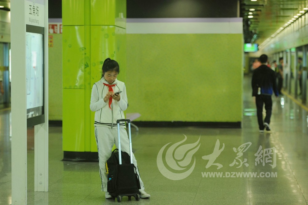 0、2015年5月19日,上海地鐵10號線五角場站,一名來自上海外國語大學(xué)附屬雙語學(xué)校的學(xué)生在五角場站等待地鐵上學(xué)。記者在現(xiàn)場看到,那里的交通情況還是比較平穩(wěn)的,上班時段沒有發(fā)生交通擁堵情況。