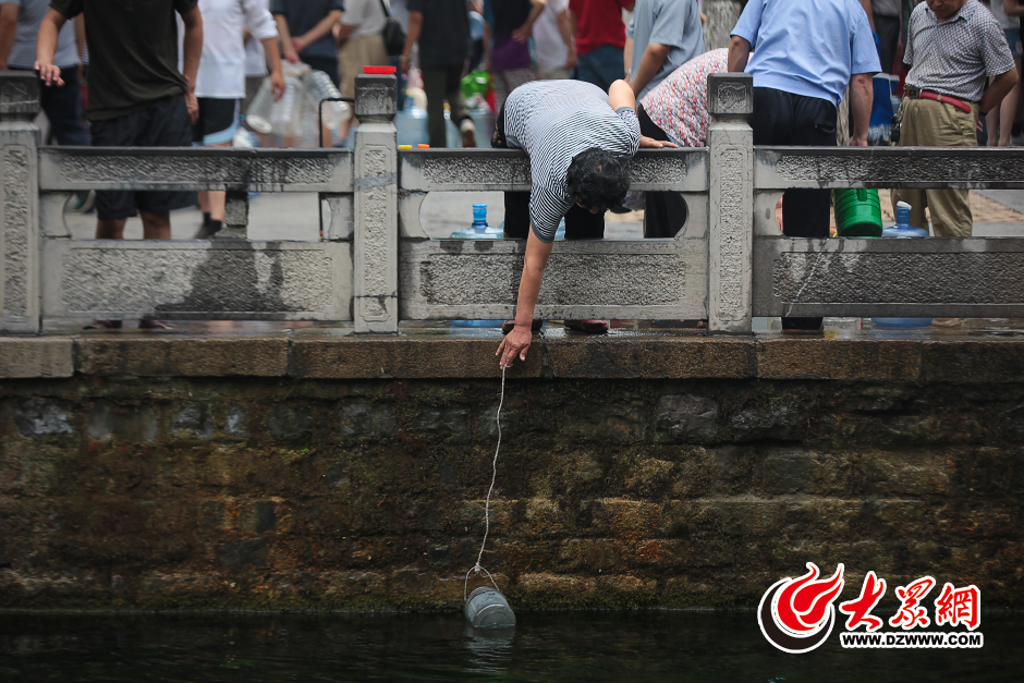 然而,泉水的停噴并沒有阻止市民前來取水的熱情,大眾網(wǎng)記者看到,黑虎泉停噴后,市民已經(jīng)無法像往常那樣將桶拎到獸頭下面接水了,在以往并不引人注目的黑虎泉旁的取水點,近百名前來接水的市民排起了長隊接水,各種大小不一的水桶和水壺,在取水點處發(fā)出叮叮當當?shù)呐鲎猜,由于取水點處泉水水量較小,市民最少等待時間約半小時,最長的等了1個多小時。
