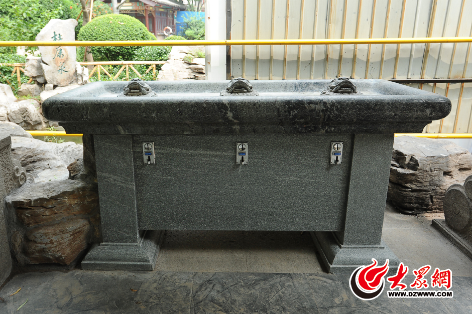 7月22日,在濟南天下第一泉趵突泉景區內,杜康泉旁的市民取水點新設立“投幣機”,吸引了眾多市民探頭觀看。據了解,自6月8日以來,景區暫時關閉杜康泉和玉泉兩個直飲點,對設備進行清理、升級,目前,景區工作人員正在趕進度改修,預計十多天后竣工與市民見面。大眾網記者 王長坤 攝